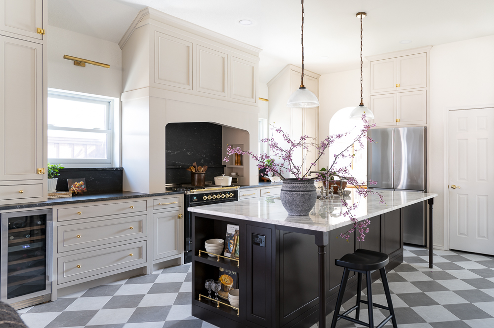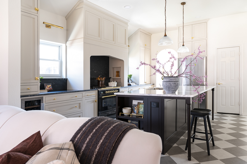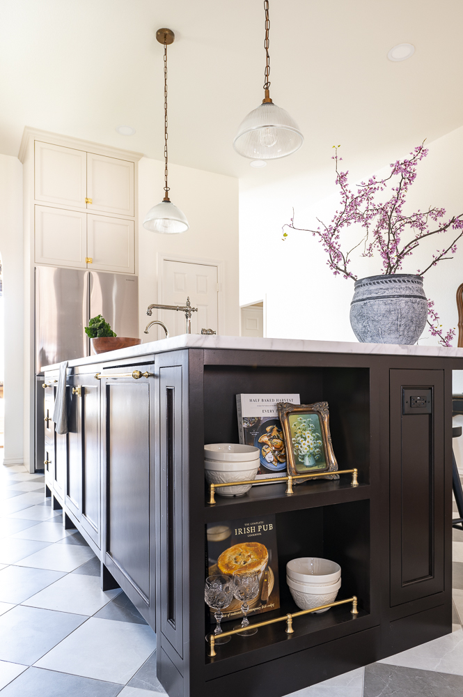 Although the footprint of this kitchen is not big, it packs a serious punch with all its details! The custom inset cabinets were tailor made to the clients preferences and the layout was completely transformed to maximize every inch of this space for a better workflow. The island has a custom stain that was made specifically for this project and complete with a marble countertop and sweet little recessed nook for all her favorite cookbooks and dishware.